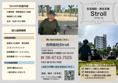 大阪市にある合同会社Strollは、福祉用具レンタル・福祉用具販売・福祉相談をしています。